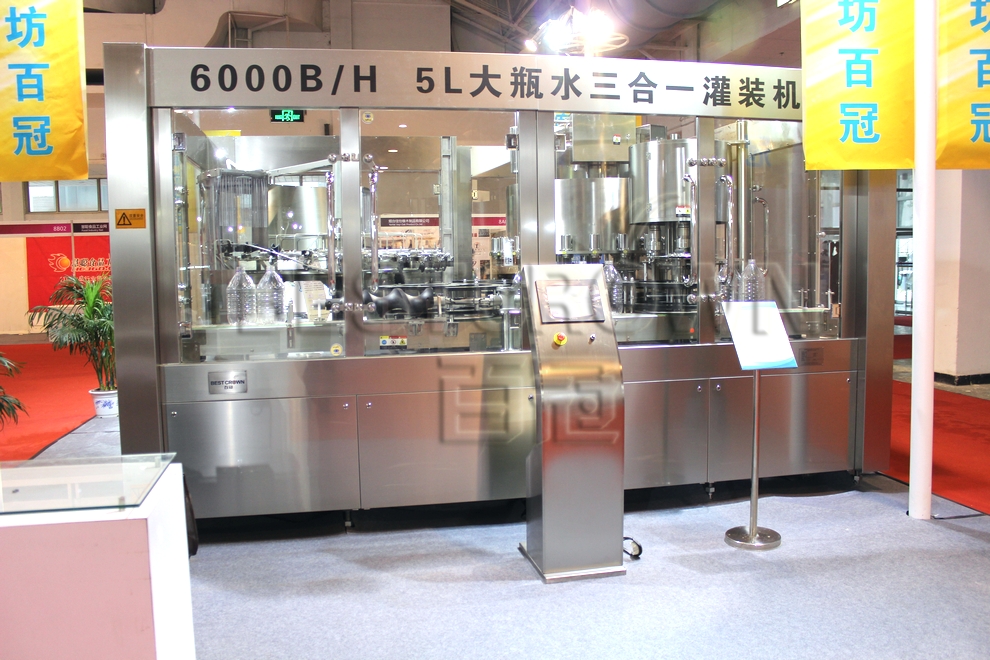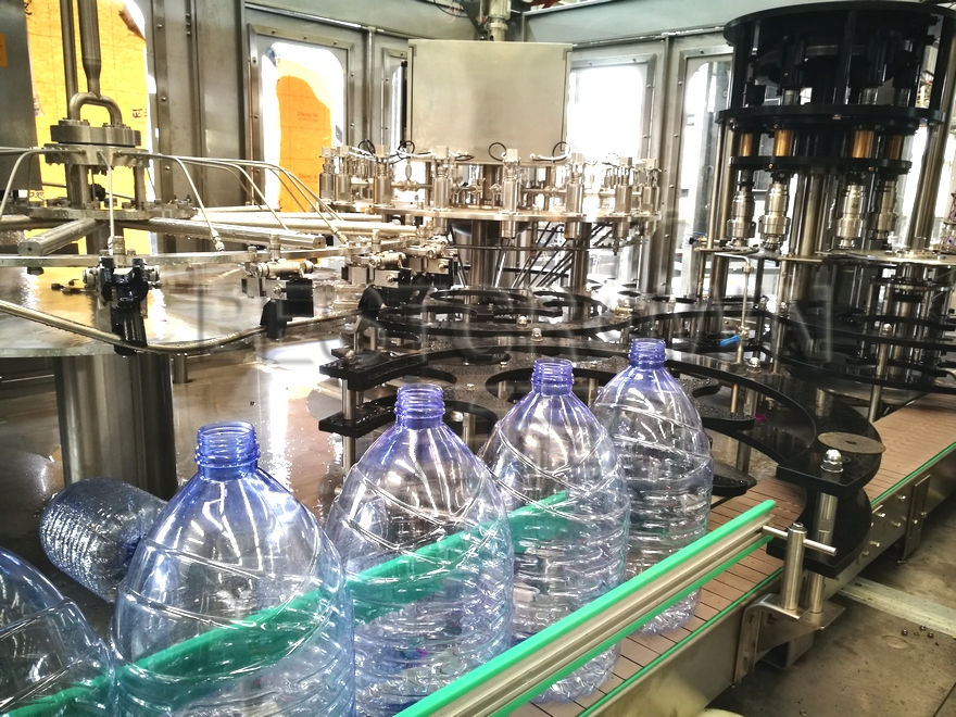 大瓶灌装机是应市场需求研发,适用于便携式4~20L大瓶纯净水、矿泉水或类似液体的包装生产线。该生产线自动化程度高,全程托瓶底传递,可变频调速,整线运行平稳。